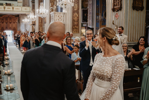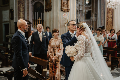 Fotografare una cerimonia in una chiesa così suggestiva significa lasciarsi guidare dalla luce, dagli spazi e soprattutto dalle emozioni che si intrecciano tra gli sposi e le persone a loro più care.